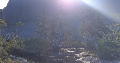 The forecast for our middle day spoke of cloud increasing and afternoon rain so an early start was in order. By the time sunrise greeted us as we were already climbing out of the Rodway valley to join the Overland Track at the northern end of Cradle Cirque.