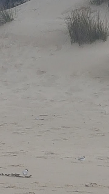 | Hooded plovers on Crescent Bay Beach – It’s important to run/walk along the wet sand. These little fellas nest in shallow hollows – so easily disturbed by a single footprint. |