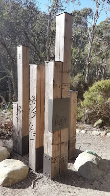 On the other side of the beach an impressive sculpture marks the official start of the Three Capes Track. For my purposes, a 500m sprint along the compacted gravel ‘superhighway’ brought me to a 5km turn-around so my total run distance would be 10km. The immaculately constructed track makes for a stark contrast with the scratchy and, in places, hard-to-find trail from the car park. My time of 1hr 50min for the 10km indicates just how scratchy the Denmans Cove track has become.