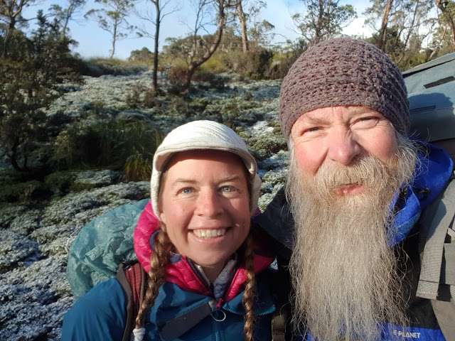 On our final morning it was exciting to wake and find a light dusting of snow had settled overnight. After all our dawn or pre-dawn starts it was lovely to have a super-relaxed 9:30am departure. While light snow fell intermittently on our walk over the Speeler Plains, conditions were far from extreme. Views extended as far as Quailes Hill, Mount Kate, Hounslow Heath and up the Pencil Pine Valley. However, Cradle with its accompanying peaks and ridges was staying hidden. Not to worry – our trip had been a corker. Snow on the last day was icing on the cake and brooding overcast skies were part of the deal.