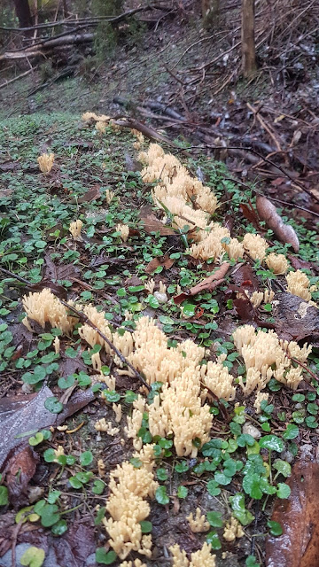 | Trackside fungi display near Roaring Meg |