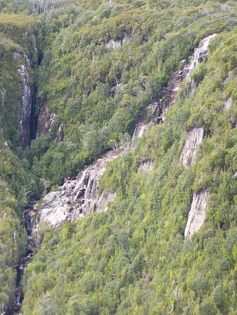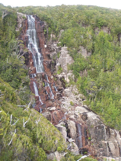 I was now faced with a narrow chasm 30 metres deep and barely 3 metres wide with no view of the falls. I refused to let this defeat me so a few more minutes of scrub wrestling delivered me to a point where I could descend into the depths and scramble up the other side. My rocky outcrop did indeed give a better view of the falls but the relatively low flow made me wonder whether it had been worth the effort.