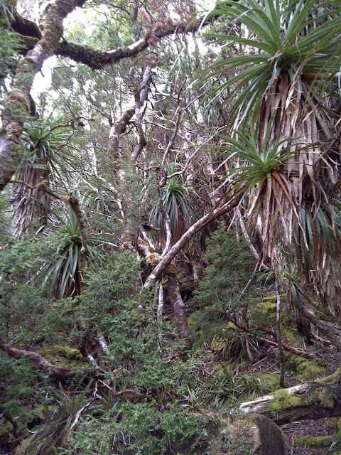 | Pandani and stunted myrtles in the forest below Knife Mountain |