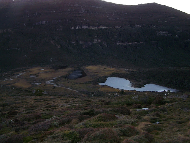 After the Flats, Moonlight Ridge is made up of four distinct Hills each with its own unique character. After approaching from the east, Hill One is sidled on it’s north and west flanks just above a small cliff-line. Hill Two has it’s appropriately named eastern extention, Tabletop. Hill Three features Agnetes Garden atop a narrow ridge leading out to The Hippo on one side and on the other, the narrow Moores Bridge is a classic glacial circque separating Lune River from the upper tributaries of the Picton. Hill Four overlooks Reservoir Lakes, Pigsty Ponds and the upper reaches of the D’Entrecasteaux River which would be my accommodation for the next two nights.