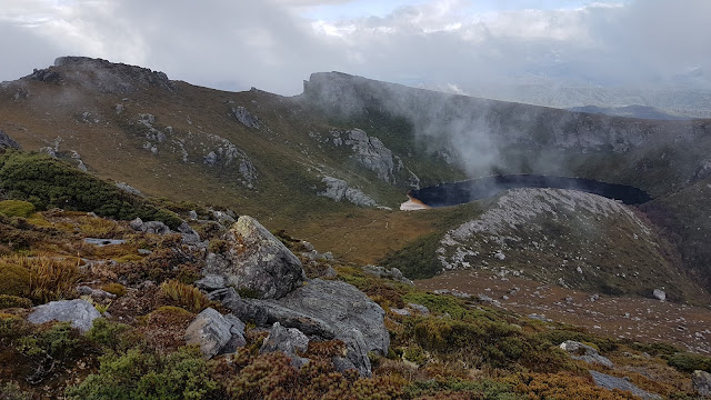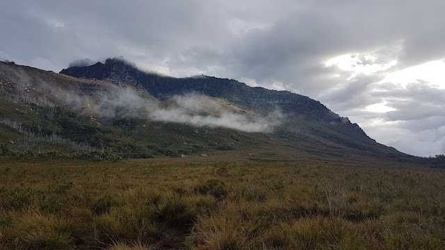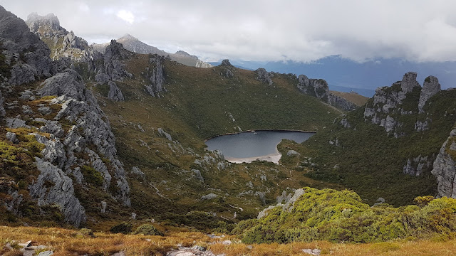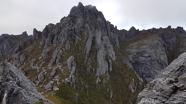 A reasonably slick departure from home had us departing Huon Campsite near Scotts Peak Dam at 10:30. The previous entry in the log book was a couple doing Lake Oberon via Alpha and Kappa Moraines starting today and expecting to finish today! Mega serious, hard-core trail runners we assumed.
