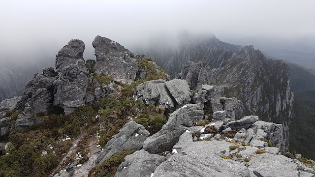 * In John Chapman’s introduction to the Western Arthur Range (South West Tasmania, Fifth Edition, 2008, page 142) his final comment regarding track standard states, “In poor weather, many groups abandon their trip at the start of the difficulties at Lake Oberon.”