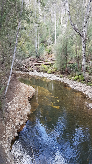 The highlight of my day was the seemingly abandoned Rain Forest Walk at Robertsons Bridge. The recent (2012?) bridge reconstruction appears to have wiped out the start and end of the track. From the southern side of the river on the upstream side of the road, follow the gutter down between the bridge embankment and a small natural cliff. A boardwalk can be found among the man ferns close to the river. Follow this upstream to the point where a footbridge has been washed away.